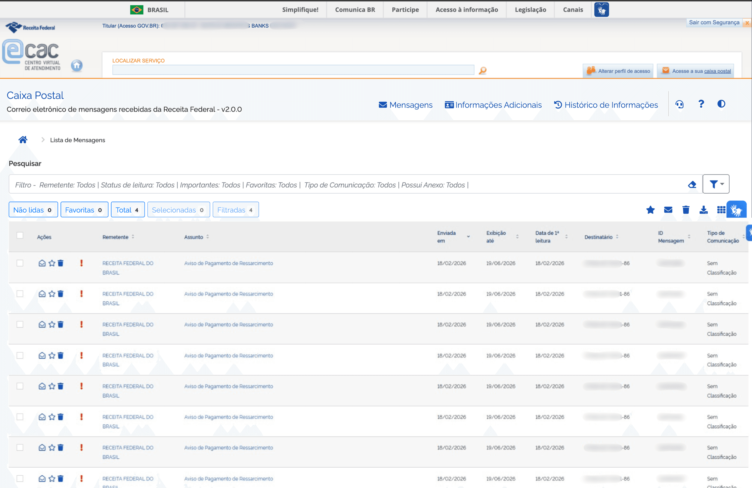 Valores em tributos recuperados até o momento